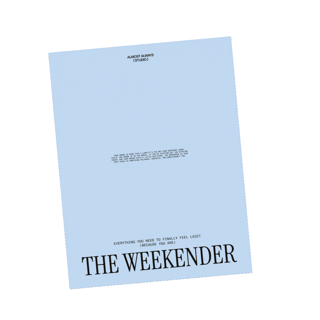 For when your visuals feel all over the place and you’re ready for clarity. The Weekender gives you a full brand suite: logos, colors, fonts, and strategy, so everything finally feels cohesive and intentional. Think clear direction, confident identity, and a brand that actually looks like you mean business.